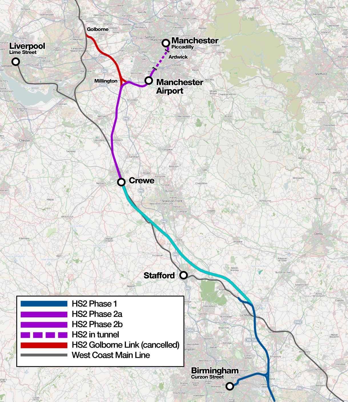 Efter att Storbritanniens premiärminister Rishi Sunak i oktober 2023 avbröt fas 2 av HS2-projektet, söker nu borgmästarna Andy Street och Andy Burnham diskussioner med transportminister Mark Harper om möjligheterna att återuppta projektet.