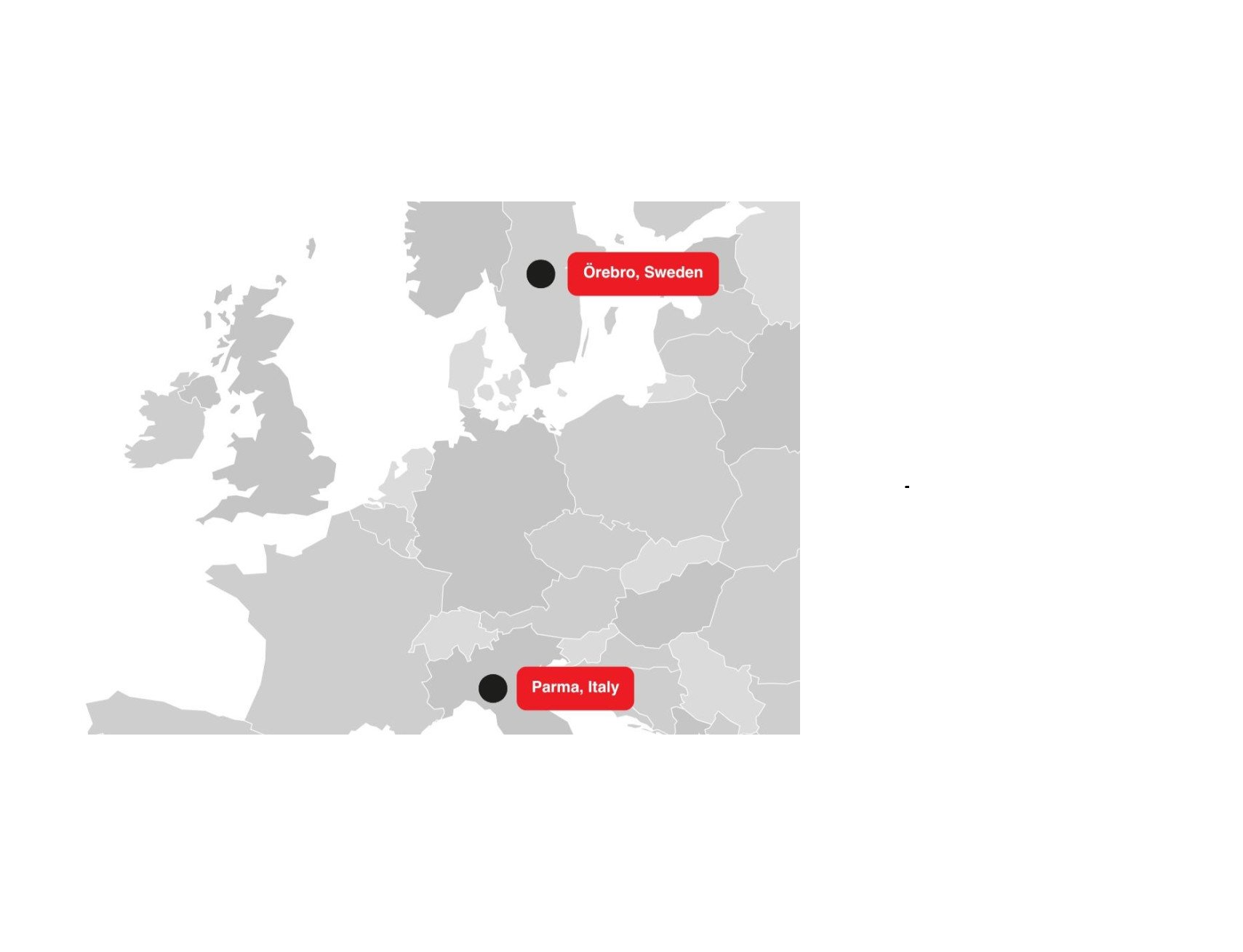 De veckovisa avgångarna mellan Parma och Sverige innebär en transittid på tre dygn. Rutten kopplas direkt till terminalen i Örebro, vilket skapar korta ledtider och stabil kapacitet.