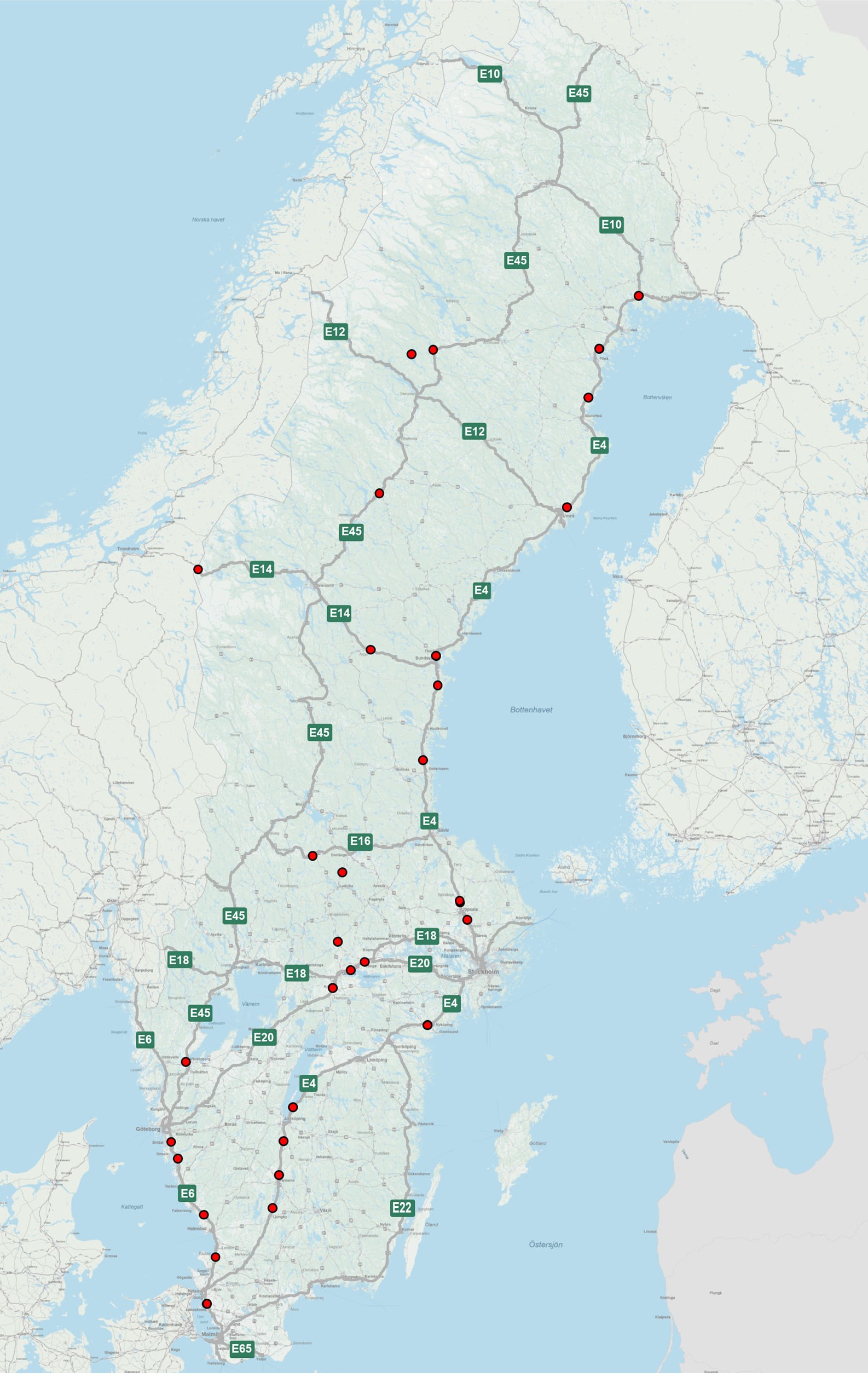 Karta över de utpekade rastplatserna Bild: Trafikverket